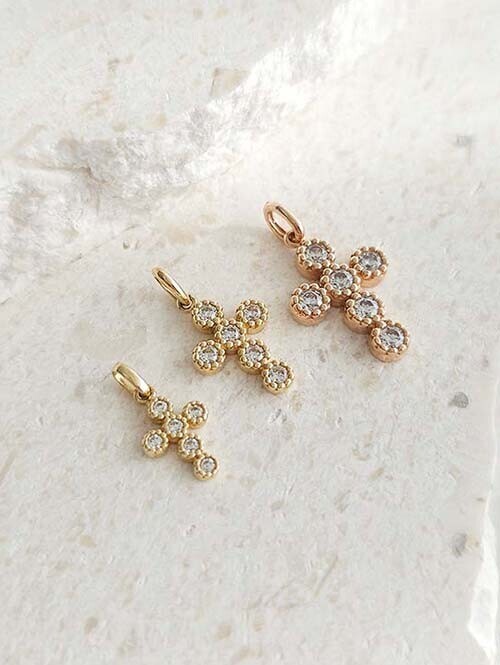 - 14K,18K 미니엠보 큐빅 십자가 펜던트(소 사이즈) (체인별도상품)