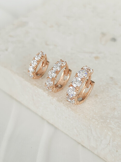 - 14K 18K 라이트 큐빅 원터치 링귀걸이 (중사이즈)