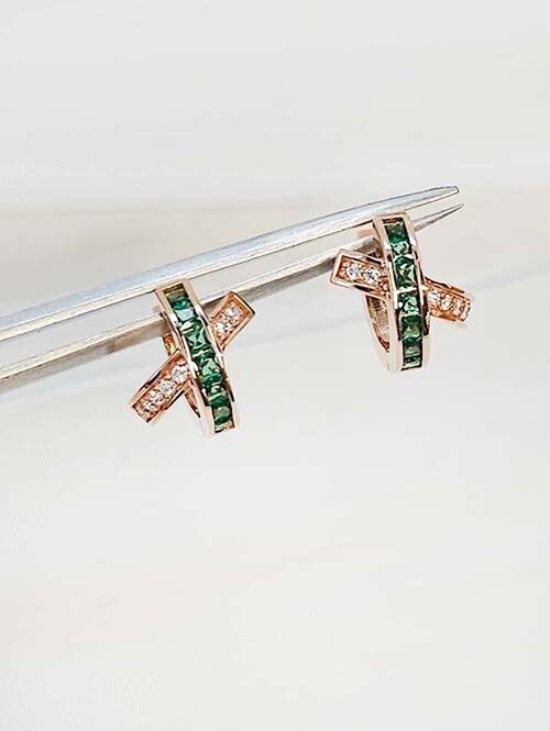 - 14K 18K 엑스라운드 컷팅큐빅 귀걸이