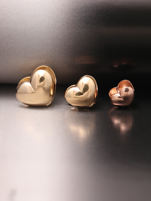 - 14K 18K 통통 양면하트 볼륨 귀걸이 (중 사이즈)