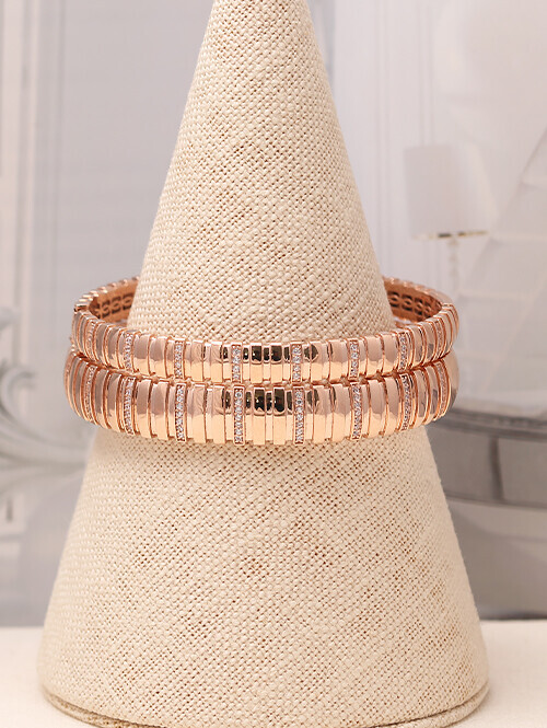 - 18K 세비체 세로줄 큐빅 뱅글 통팔찌 (소)