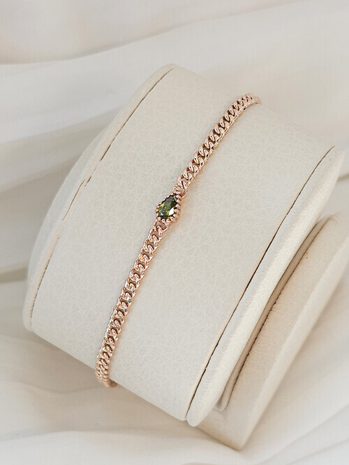 - 14K 18K 페리도트 물방울큐빅 할로우 체인 팔찌
