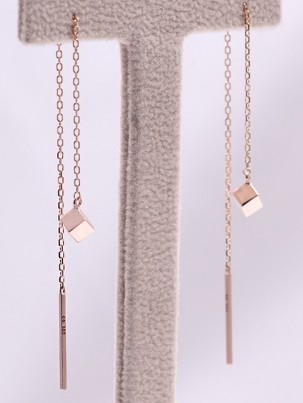 - [당일출고 제품] 14K 18K 큐브 드롭 롱귀걸이 [소]