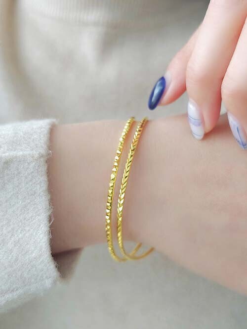 슬림한 뱅글 팔찌에 입체감있는 다각형 컷팅이 눈부신 반짝임을 더해주는 레이어드팔찌