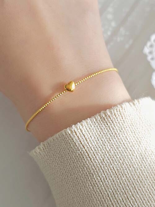 동글동글 볼 텐션팔찌에 미니 통통하트가 연결된 레이어드 팔찌