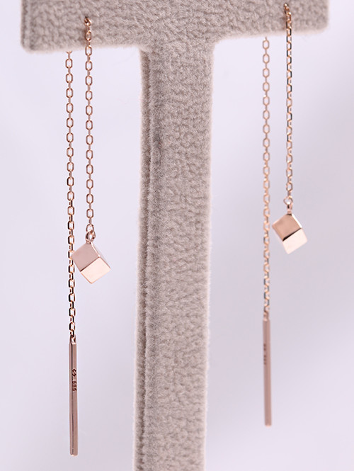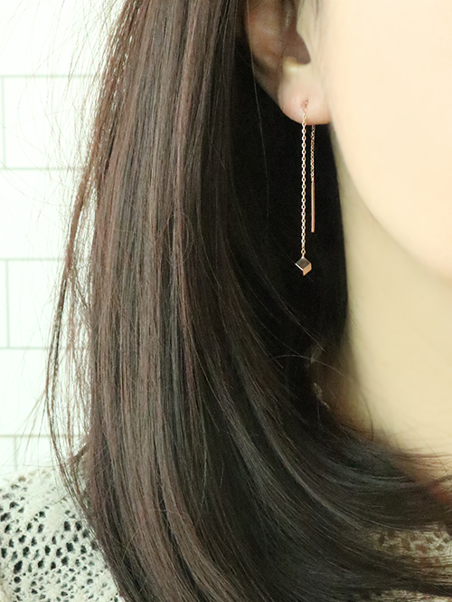 [당일출고 제품] 14K 18K 큐브 드롭 롱귀걸이 [대]