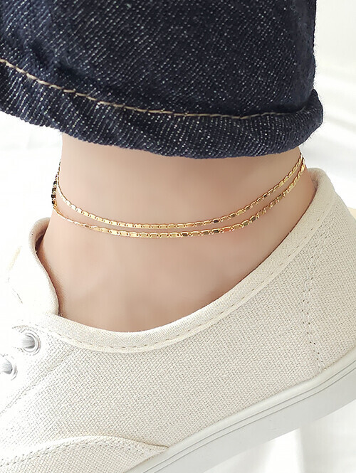 플랫한 납작 체인이 고급스러운 분위기를 더해주는 체인 발찌