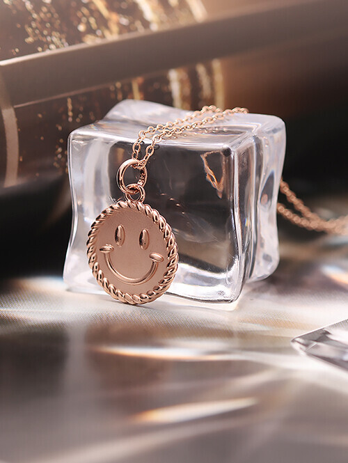 은은한 무광 텍스쳐에 엔틱한 로프꼬임 테두리를 두르고 있는 스마일 양면 펜던트