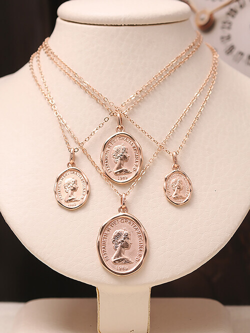 실링 왁스 디자인에 여왕님 형상이 양각되어 있는 4종 펜던트