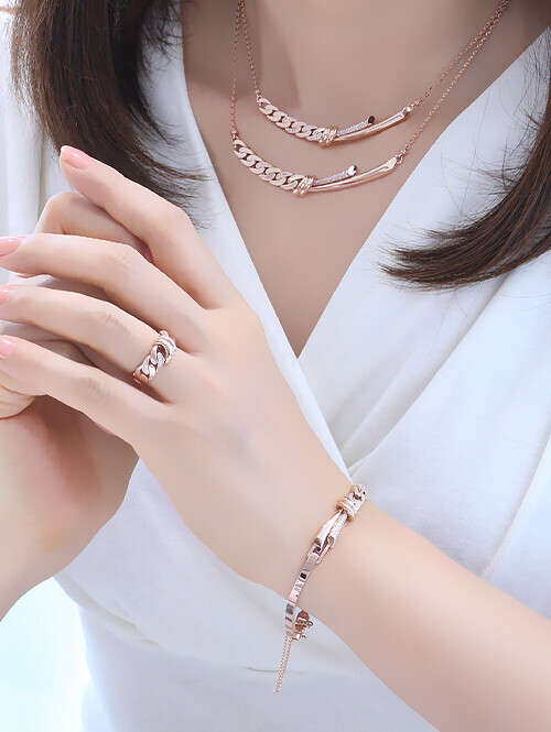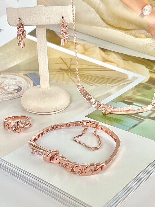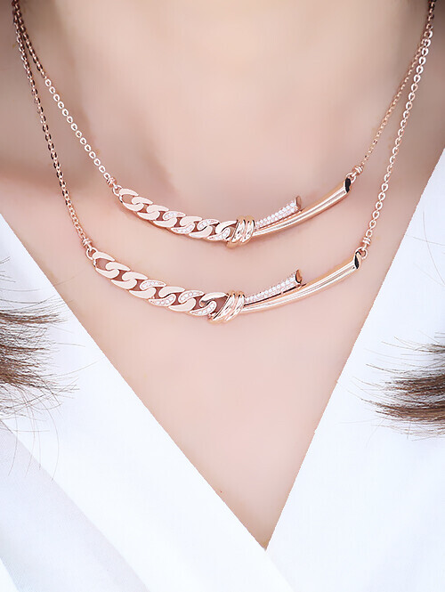관능적인 매력이 가득 담긴 드레시한 무드의 일체형 체인 스틱 목걸이