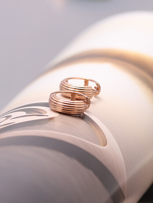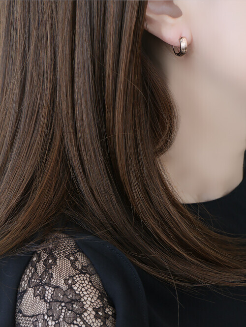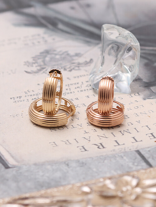 볼륨감있는 링 바디에 세로라인이 더해진 유니크한 귀걸이