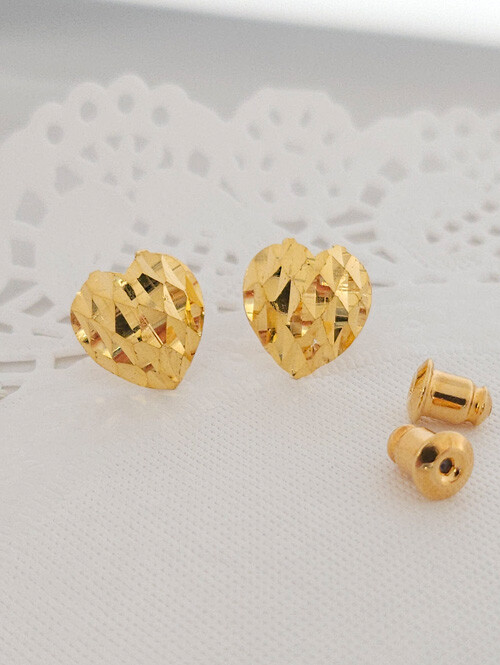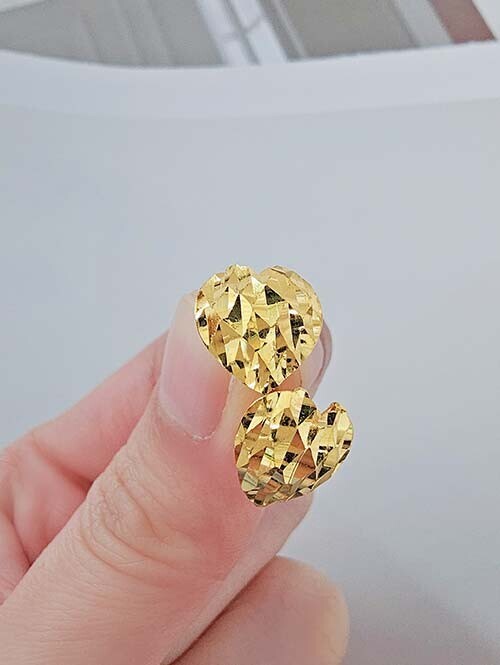 24K 순금 1.875g 컷팅팟 볼륨하트 귀걸이 (핀/침형)