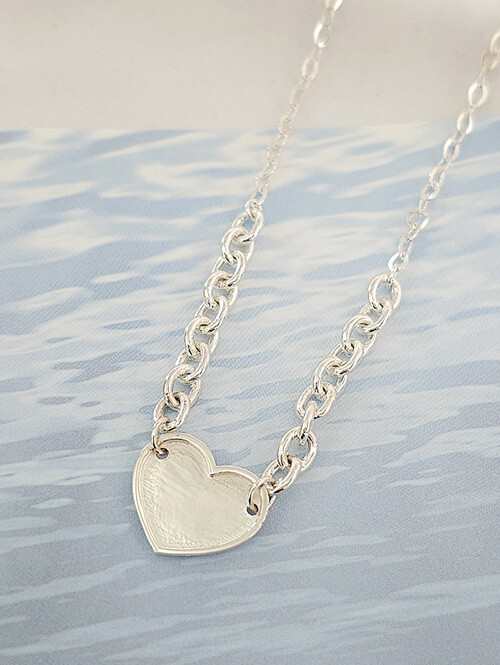 입체적인 하트 메달에 사슬체인이 연결되어있는 세련된 디자인의 아기 실버 은목걸이