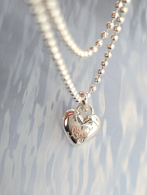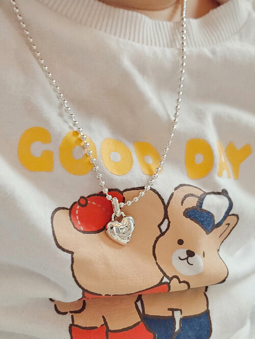귀여운 하트 메달에 볼체인이 연결되어있는 러블리한 아기 실버 은목걸이