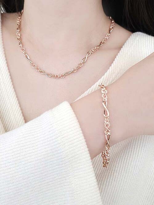 뫼비우스의 띠를 닮은 꼬임 라인 쉐입과 컷팅써클을 믹스한 감각적인 체인목걸이