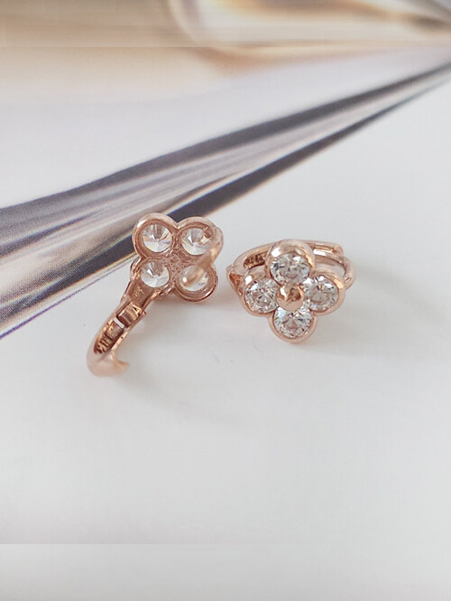 귀여운 플라워 쉐입에 큐빅이 콕콕 세팅된 러블리한 귀걸이