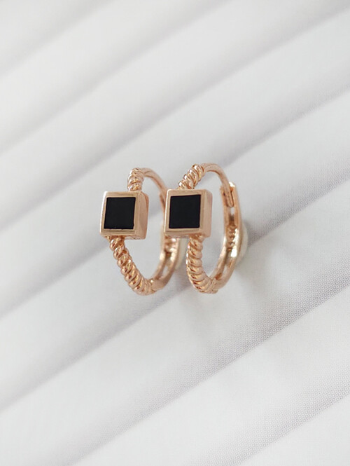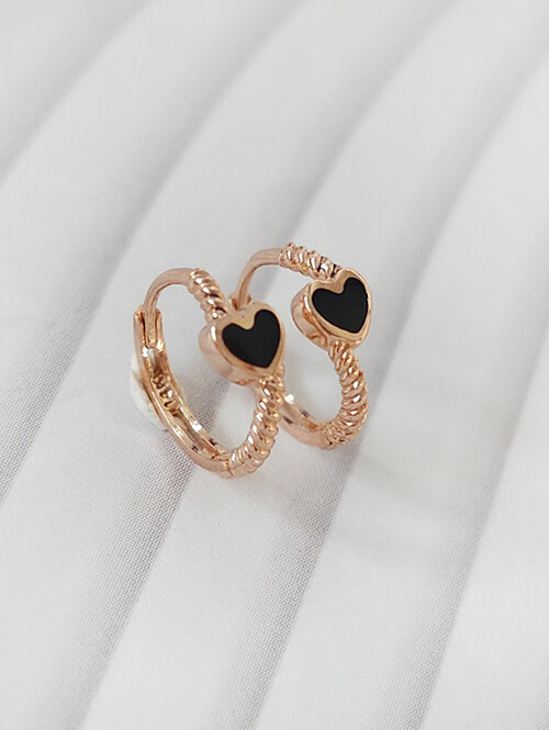 미니미한 크기에 하트 or 사각 디자인에 세련된 블랙에폭시가 세팅된 귀걸이