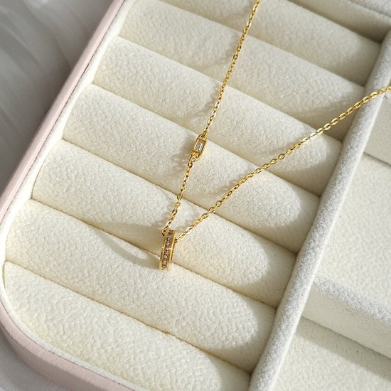 글로시 원통 큐빅포인트 목걸이
